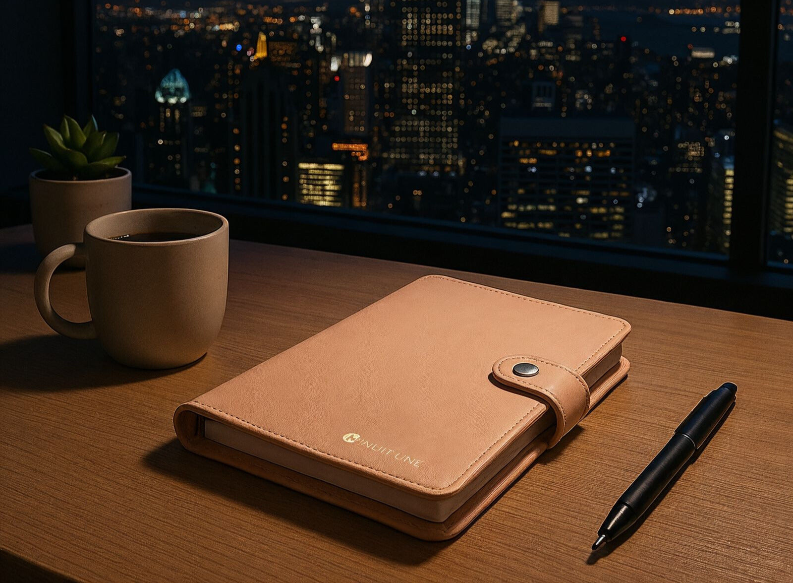Minuit Une transforme le carnet en un véritable allié du quotidien. Fabriqués en cuir vegan rechargeable, nos carnets allient esthétique et fonctionnalité pour centraliser vos rendez-vous, idées et listes grâce à des recharges modulables.
